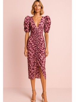 COLECCIÓN INVITADA PERFECTA Vestido de fiesta midi confeccionado en crepe con escote en V, hombreras y cuerpo recto con detalles geométricos en la cintura consiguiendo efecto visual de cintura estilizada y más estrecha. ---------- Si tienes alguna duda cuentas con una Guía de tallas a...